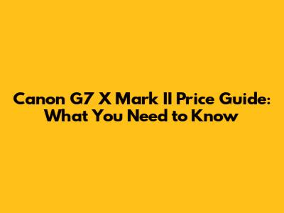 Canon G7 X Mark II Price Guide: What You Need To Know