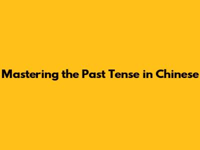 Mastering The Past Tense In Chinese