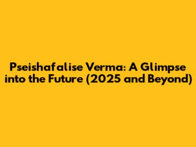 Pseishafalise Verma: Age, Career & Future In 2025